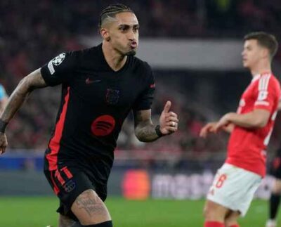 Barcelona sacó ventaja de visitante 1-0 jugando con un jugador menos desde los 22′ minutos en la Uefa Champions League